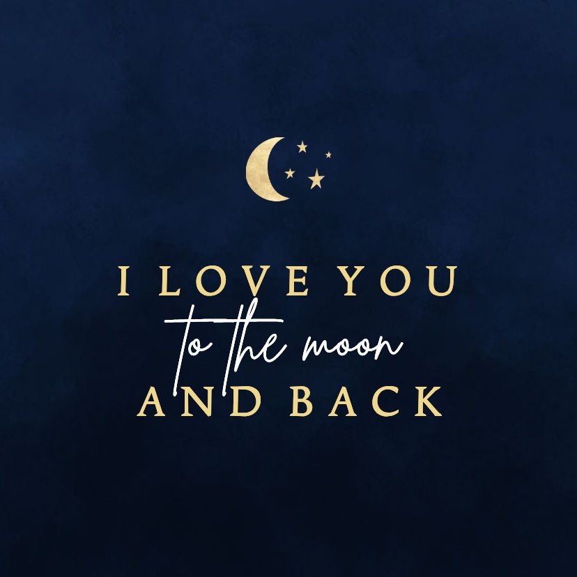 Stijlvolle tegen voor iemand waar je veel van houdt, met de tekst I love you to the moon and back. In het donkerblauw.