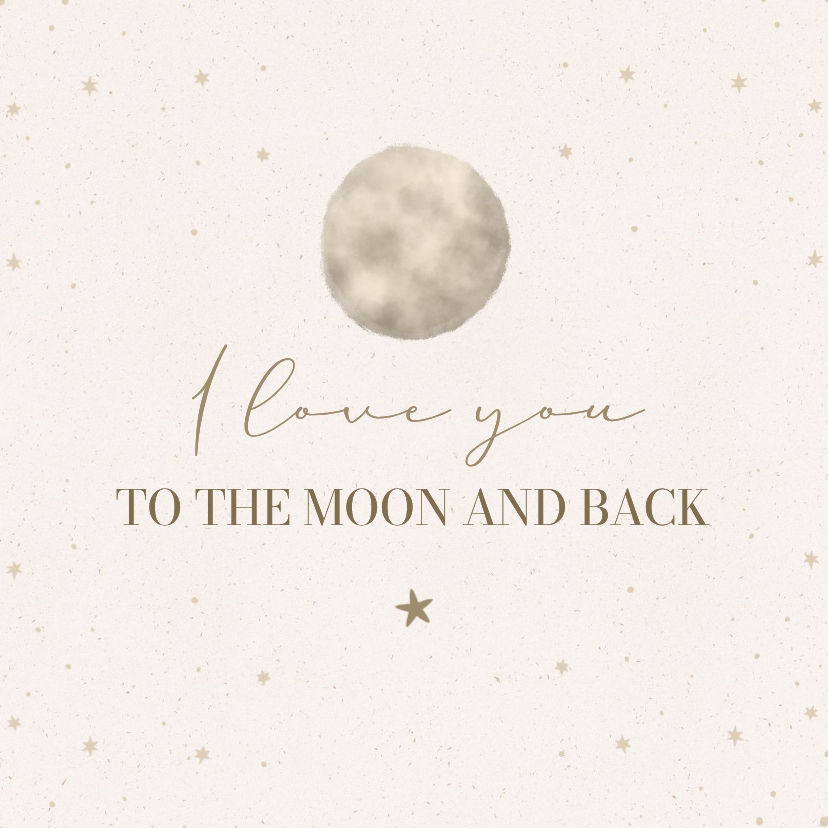 Een liefdevol, decoratief tegeltje met typografie Love you to the moon and back met sterretjes, maan en beige, neutrale kleuren.