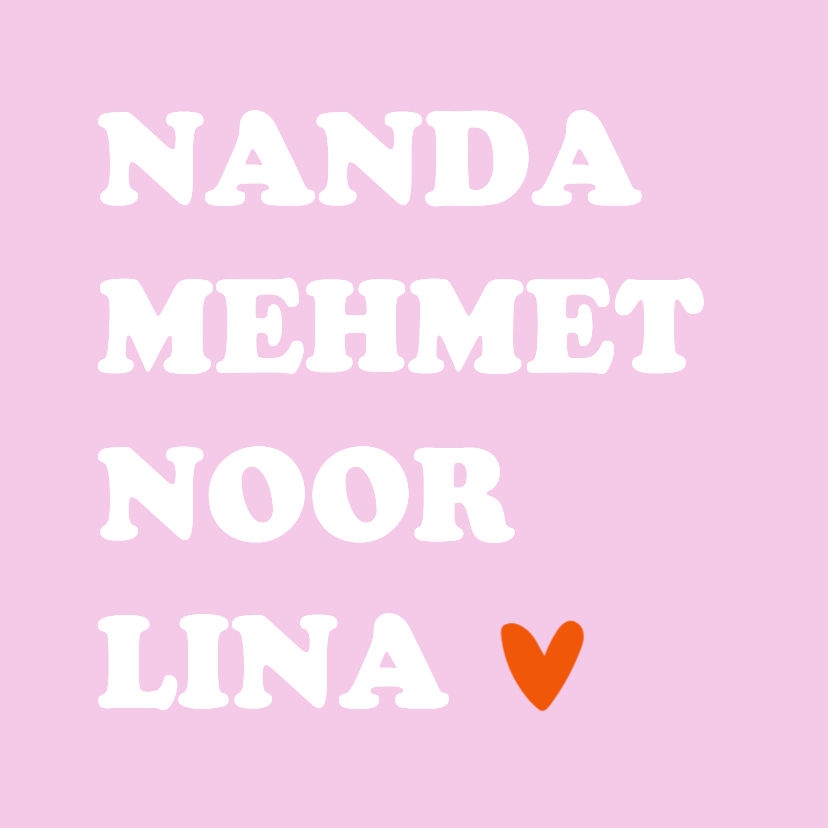 Hip roze met wit tegeltje met de namen van jullie gezin erop. Tekst en kleur zijn aanpasbaar.