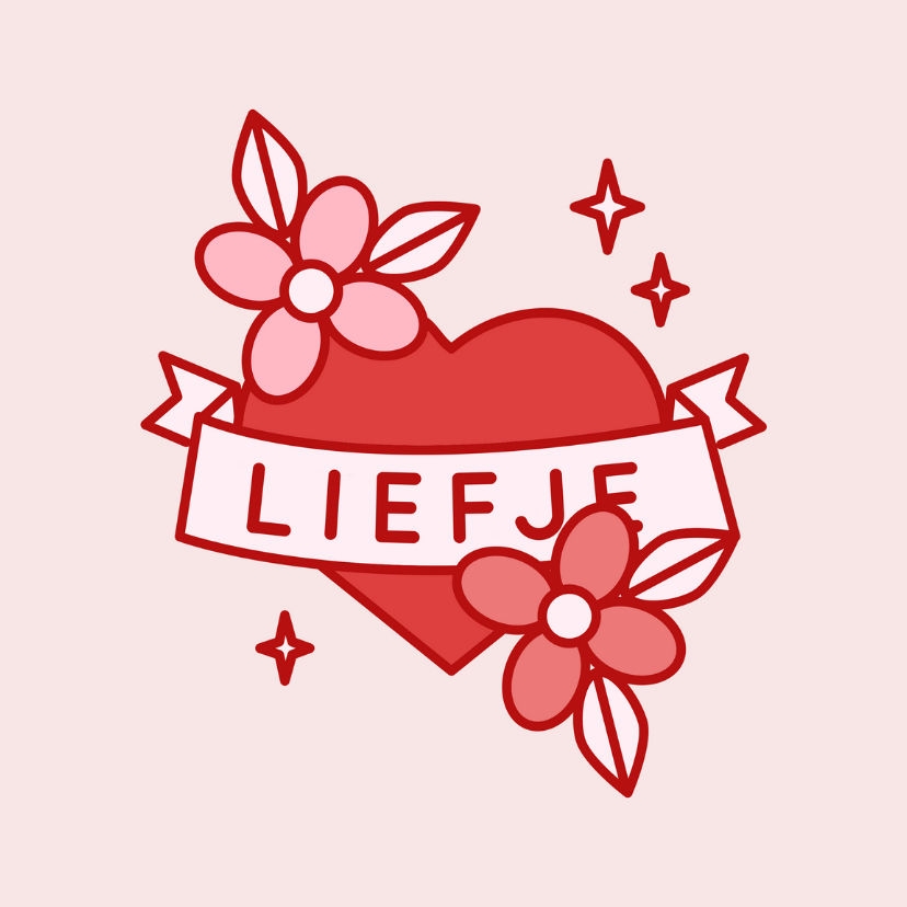 Een lieve tegel voor een geliefde. Met een hartje in tatoeage stijl met bloemen en de tekst liefje.