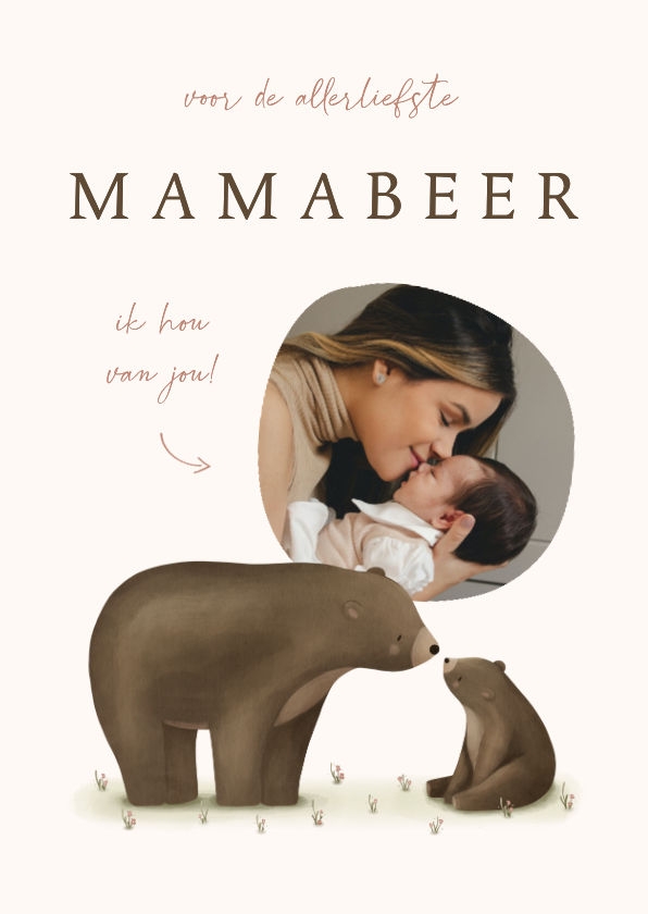 Tegeltje voor de allerliefste mamabeer, met een illustratie van twee beertjes en een lieve foto.