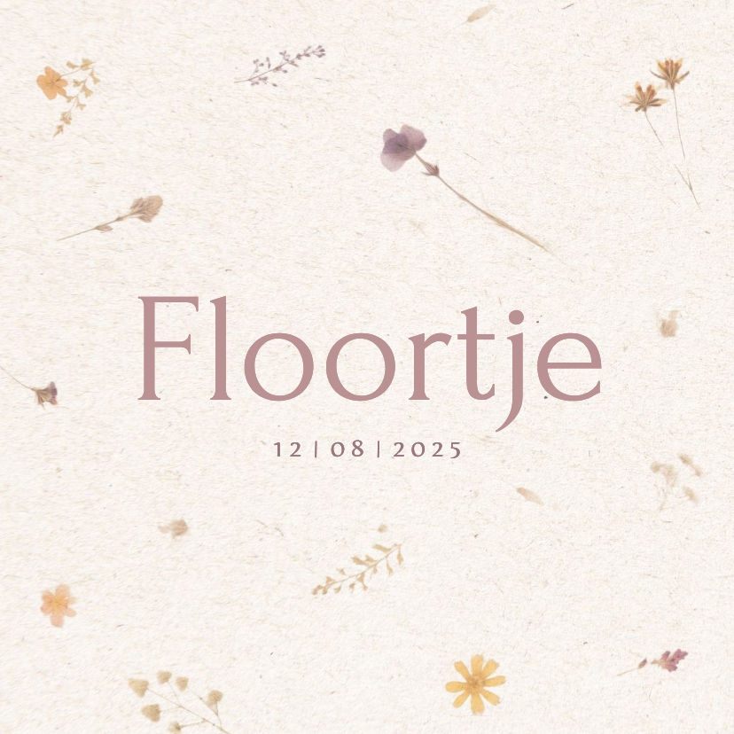 Lief geboortetegeltje met droogbloemen in beige kleur.