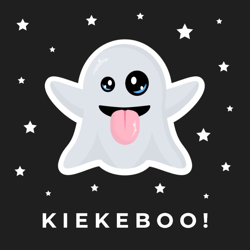 Tegel met zwarte kleur en witte sterren en emoticon spook. Happy Halloween.