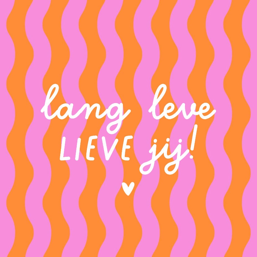 Vrolijk en hip tegeltje voor een jarige met golfjes achtergrond in roze en oranje met verjaardagstekst "lang leve lieve jij!"