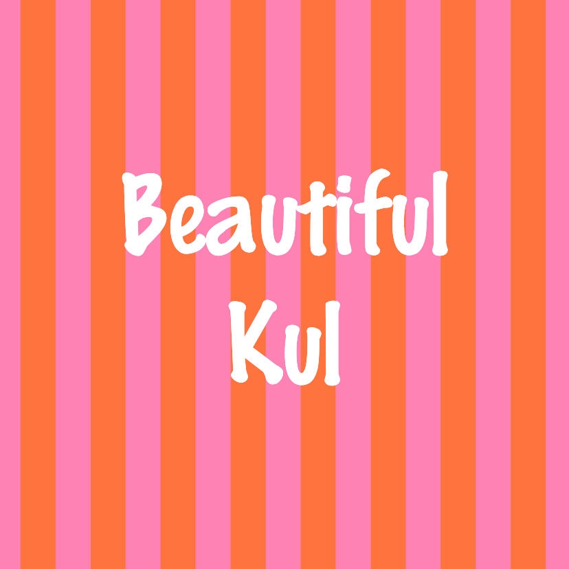 Vrolijk kleurig tegeltje met grappige aanpasbare tekst met roze en oranje streepjes i.s.m. Iris Rulkens.