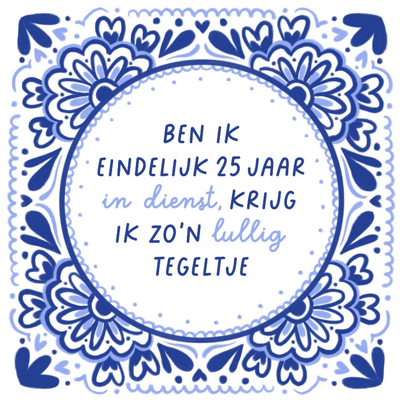 Grappig hollands tegeltje voor een werkjubileum met een delfts blauw kader