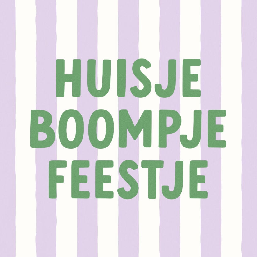 Vrolijk en hip tegeltje met streepjes en de tekst huisje boompje feestje.