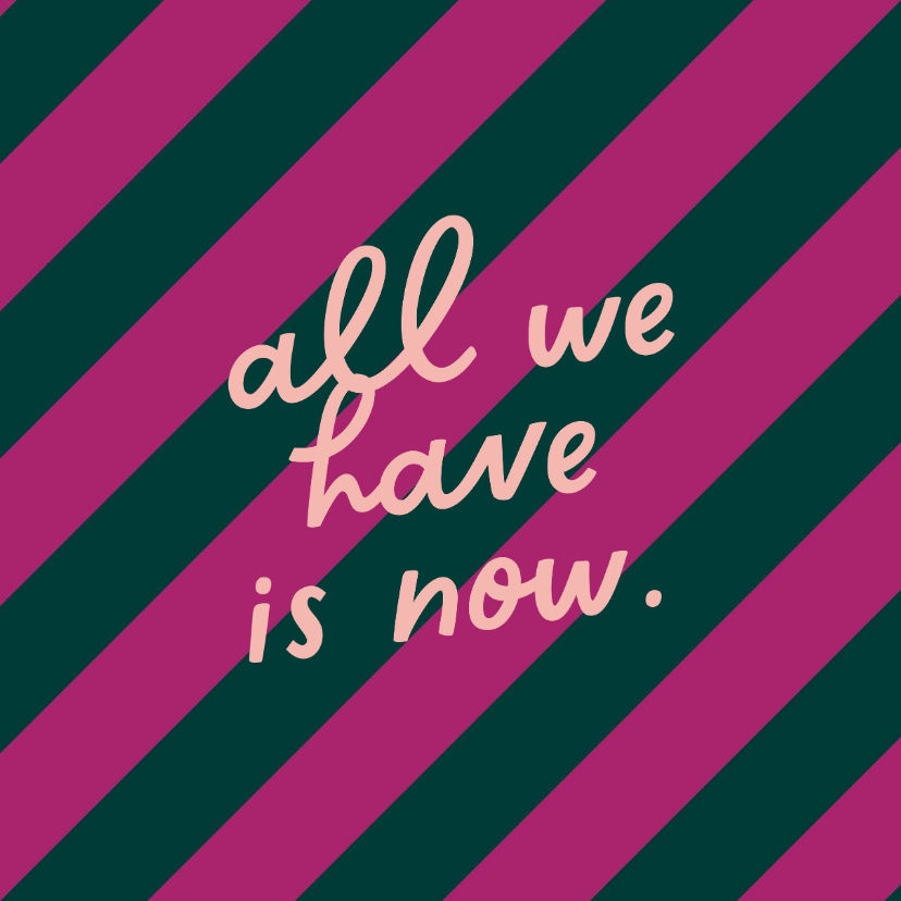 Leuk kleurrijk woontegeltje met de tekst 'all we have is now' en strepen!