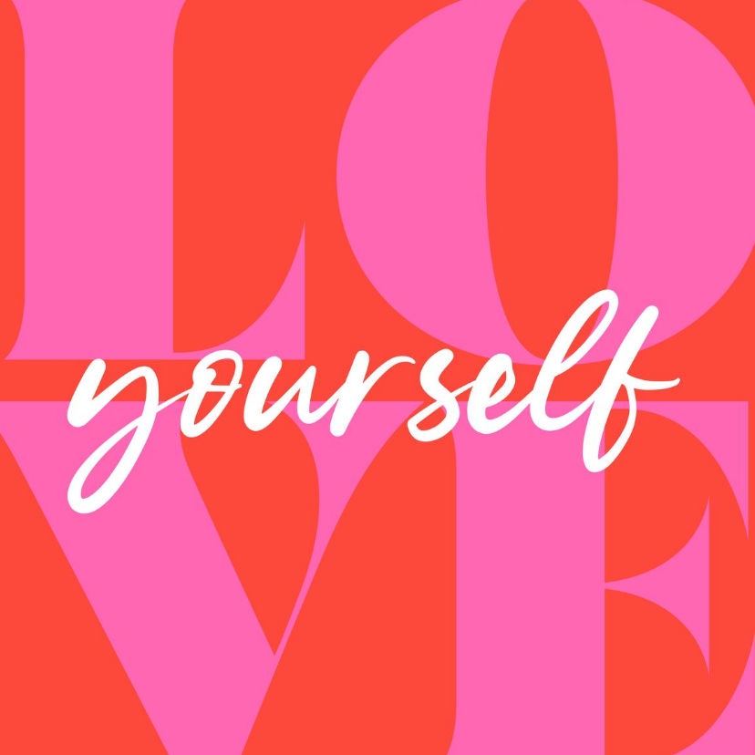 Hip en kleurrijk tegeltje met de tekst 'LOVE yourself' in felle kleuren!