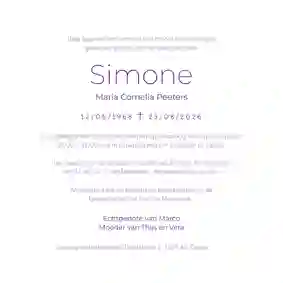 Een stijlvolle rouwkaart met paarse handgeschilderde bloemen gecombineerd met waterverf.
