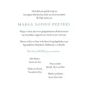 Twijfel je over de kwaliteit van de foto? Onder ‘Foto bewerken’ kun je de foto verbeteren. Mocht dit niet het gewenste effect hebben, dan is het handig om te kijken of je de foto in hogere kwaliteit kunt uploaden. Om er zeker van te zijn dat de foto mooi op de rouwkaart komt te staan, kun je een gratis proefdruk bestellen. Deze wordt vaak dezelfde dag nog naar je opgestuurd.