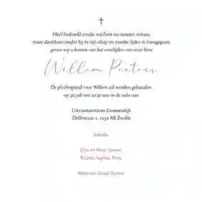 - ook foto’s van je dierbare als baby, kind of (jong)volwassene op de rouwkaart plaatsen