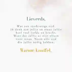🌸 Twijfel je nog steeds over wat je op je sterkte kaart moet schrijven? Blijf dan dicht bij jezelf en geef toe dat je er stil van bent. Schrijf bijvoorbeeld: Ik weet even niet wat ik moet zeggen, maar weet dat ik aan je denk.