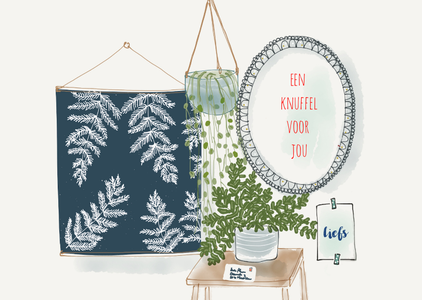 Een leuke getekende kaart om te laten weten dat je aan iemand denkt.