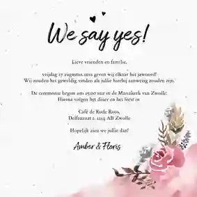 🌷Tip: Wil je jullie trouwkaart met bloem extra persoonlijk maken? Maak dan gebruik van onze kaartmaker. Plaats bijvoorbeeld een verlovingsfoto op de kaart in een bloemenkader.