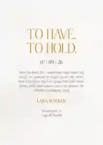 Alle trouwkaarten in deze collectie zijn voorzien van foliedruk. Maar er zijn meer manieren om te ontdekken welke huwelijksuitnodigingen foliedruk details bevatten. Hiervoor kun je ons filtermenu gebruiken. Je kunt dan zelfs filteren op goudfolie trouwkaarten, of op zilver-, koper- en holografische folie.