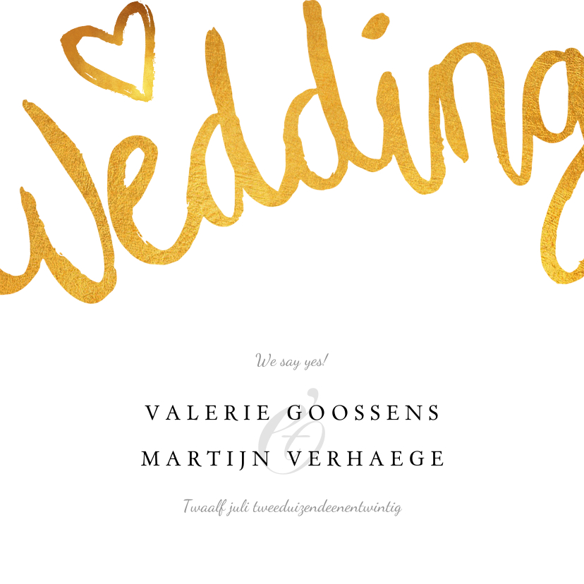 Trouwkaart wedding stijlvol en klassiek met goud en foto