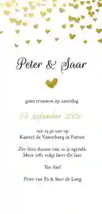 Nee, officieel is een save the date kaart geen uitnodiging. Het is een vooraankondiging van de trouwdatum. Zo kunnen vrienden en familie die dag alvast vrijhouden. En dat is fijn, want het zou erg jammer zijn als jullie dierbaren er niet bij zijn. Een save the date is dus niet hetzelfde als een trouwkaart.