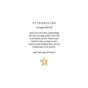 Feestelijk, maar ook losjes en ongedwongen: een borrel is een mooie manier om eens goed bij te kletsen met vrienden, familie of collega’s. En met een toffe borrel uitnodiging wordt het al helemaal een gezellig feestje. Wat dacht je van een uitnodiging voor een feestelijke buurtborrel, een zwoele zomerborrel in de tuin of een paasborrel? Voor elke gelegenheid en stijl hebben we wel een leuke uitnodiging voor een borrel. Van stoere kaarten met bier-illustraties tot stijlvolle uitnodigingen met goudfolie. Kies de leukste borrel uitnodiging en verras je dierbaren met een persoonlijk kaartje!