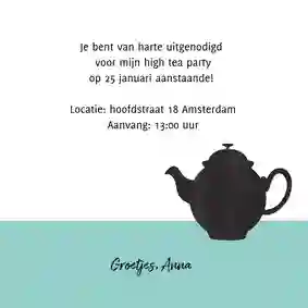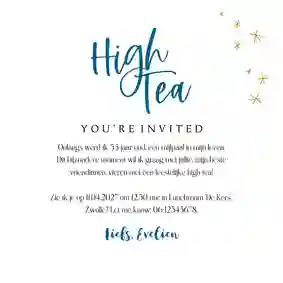 Houd je binnenkort een High Tea? Nodig dan je vriendinnen, vrienden en/of familie uit met een klassevolle uitnodiging. Je maakt heel gemakkelijk een persoonlijke High Tea-uitnodiging door een van onze speciaal daarvoor ontworpen High Tea-uitnodigingen te kiezen. Succes gegarandeerd!