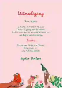 Een huis wordt echt je thuis als je er mooie dingen meemaakt. Daarom willen we je graag uitnodigen voor een housewarming in ons nieuwe huis! Op DATUM om TIJD ben je welkom op dit adres: STRAATNAAM HUISNUMMER POSTCODE PLAATS