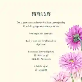 Nu je de foto’s hebt geüpload, is het tijd om de foto uitnodiging af te maken. Sleep het plaatje naar de juiste plek of gebruik de foto als achtergrond. Ook kun je de foto’s vergroten of verkleinen. Voeg vervolgens een leuk kader toe en schrijf een leuke tekst op de uitnodiging. Dat is alles wat je nodig hebt om zelf een uitnodiging met foto te maken.