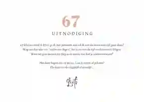 Natuurlijk is het het leukst om deze punten in een feestelijk tekstje te verwerken. Dat kan er zo uit zien: Hoera, ik word 67 en ga met pensioen! Dit wil ik graag met jullie vieren op [DATUM]. Je bent van harte welkom vanaf [TIJD] uur bij [LOCATIE]. Mocht je verhinderd zijn, wil je dit dan doorgeven via [TELEFOONNUMMER]
