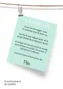 Bekijk voor meer inspiratie ook eens onze uitnodigingen voor een verjaardagsfeest van 25 jaar, 30 jaar en 50 jaar.