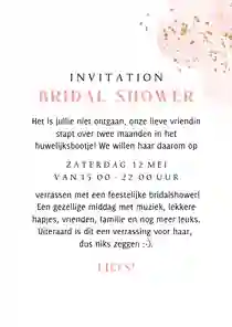 Bridal shower, bachelorette party of toch een uitnodiging met bride to be? In onze collectie uitnodigingen staan leuke kaarten om een vrijgezellenfeest mee aan te kondigen. De kleuren roze en wit voeren hier de boventoon, soms vergezeld door een sprankje goud. Staat er een gezellige avond stappen op het programma? Breng de meiden dan alvast in de stemming met een bachelorette party uitnodiging met classy cocktails of bruisende champagne.