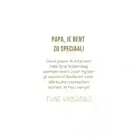 Ben je op zoek naar leuke vaderdag kaarten voor de liefste papa, stief- of bonusvader, schoonvader of opa? Dan ben je bij ons aan het juiste adres. Wij vinden namelijk dat alle vaderfiguren wat extra liefde verdienen op Vaderdag. Gebruik ons handige filtermenu om het perfecte kaartje voor hem te vinden. Filter bijvoorbeeld op Opa en ontdek onze vaderdagkaarten met teksten als ‘Jij bent de liefste opa’ of ‘Superopa’. Natuurlijk hebben we ook leuke ontwerpen voor daddies-to-be en kaarten voor zijn eerste Vaderdag.