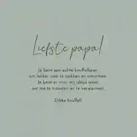 Ben je op zoek naar leuke vaderdag kaarten voor de liefste papa, stief- of bonusvader, schoonvader of opa? Dan ben je bij ons aan het juiste adres. Wij vinden namelijk dat alle vaderfiguren wat extra liefde verdienen op Vaderdag. Gebruik ons handige filtermenu om het perfecte kaartje voor hem te vinden. Filter bijvoorbeeld op Opa en ontdek onze vaderdagkaarten met teksten als ‘Jij bent de liefste opa’ of ‘Superopa’. Natuurlijk hebben we ook leuke ontwerpen voor daddies-to-be en kaarten voor zijn eerste Vaderdag.