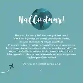 Vakantie! Of je nu lekker gaat uitrusten op een zonnig strand of juist een avontuurlijke reis vol actie geboekt hebt – het wordt ongetwijfeld genieten geblazen. En daarom is het superleuk om het thuisfront jaloers blij te maken met een vrolijke vakantiekaart. Tijdens je vakantie maak je heel eenvoudig je eigen kaart, compleet met zelfgemaakte foto’s en een persoonlijke tekst. Wij doen je vakantie kaart vervolgens in Nederland voor je op de post. Zo vallen jouw zonnige groetjes supersnel bij vrienden en familie op de deurmat!