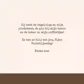Soms kan een simpele valentijnskaart onwijs grappig zijn door de tekst op de kaart. Een woordspeling, sarcastische quote of een romantisch statement met een grappige twist kan jouw liefde laten schateren. Deze grappige teksten vind je op onze valentijnskaartjes: