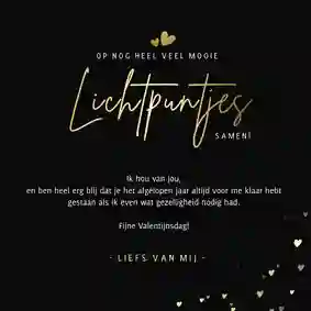 Mannen krijgen ook graag een kaart op 14 februari! Verras daarom jouw prins op het witte paard met een valentijnskaart voor hem. Laat je liefde bijvoorbeeld spreken met een kaartje met een romantische tekst of een lieve boodschap. Mannen kunnen een valentijnskaart met humor ook goed waarderen. Vind je het leuk om de grens op te zoeken? Zet hem op Valentijnsdag dan in vuur en vlam met een ondeugende valentijnskaart. Welke valentijnskaart je ook voor hem kiest, je maakt de kaart extra speciaal met foto’s, figuren en kaders. Kies bijvoorbeeld voor een foto van jullie samen.