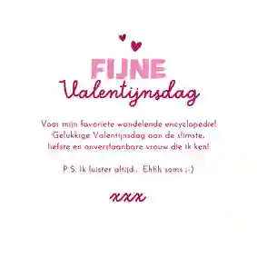 Heb je de vrouw van je dromen ontmoet en ben je helemaal verliefd? Stuur haar dan een lief valentijnskaartje. Onze collectie is romantisch én veelzijdig. Zo zie je tussen de valentijnskaarten voor vrouwen kaartjes met harten, lieve teksten en woordgrapjes, fluffy dieren, TikTok-trends en chocoladeverrassingen. Eigenlijk alles waar een vrouw stiekem toch wel heel blij van wordt. En wil je het liefdesfeest echt compleet maken? Kijk dan eens bij het aanbod valentijnscadeaus en zoek een mooi cadeau uit om naar jouw valentijn te sturen.