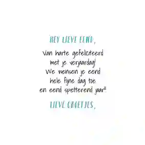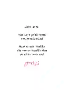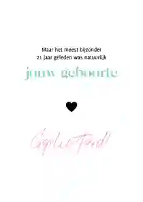 🎁 Idee: wil je dat de jarige een extra groot feest door de brievenbus ontvangt? Voeg dan een cadeau aan de ‘verjaardagskaart 21 jaar’ toe.