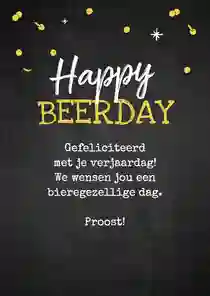 Drinken jij en je vrienden regelmatig samen een biertje? Stuur dan een leuke verjaardagskaart met bier naar de jarige job. Een biertje schept verbondenheid tussen mannen. In de voetbalkantine na de wedstrijd of in de huiskamer op een verjaardag. Die gezelligheid vier je met een biertje. Staat jouw vriend, broer of neef ook graag met een pilsje in de hand? Stuur dan een leuke verjaardagskaart met bier. Geef de verjaardagskaart extra kleur met het leuke thema bier. Je vriend, oom of collega zal zich meteen jarig voelen als je vertelt dat je op hem zal proosten.