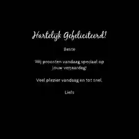 Bij Kaartje2go bestel je diverse grappige bierkaarten voor mannen. Kies bijvoorbeeld voor de 1,5 meter bier kaart, de pils op afstand kaart of de leeftijd en glazen bier moet je nooit tellen kaart. Genoeg leuke opties waardoor jouw vriend een brede glimlach op zijn gezicht tovert bij opening. Hij zal direct proosten op jullie verbondenheid.