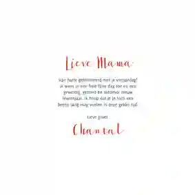 Wat ook heel leuk is, is om de koosnaampjes die je voor je moeder hebt op de kaart te schrijven. Hoe gekker hoe beter, dus maak snel een kaartje voor je moepsie, mamseltje, babu of ‘mahaaaaaaam’.
