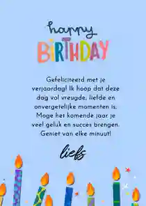 Teksten als Gefeliciteerd broertje met je verjaardag, Lieve zoon van harte met je verjaardag of Beste buurjongen, een hele fijne verjaardag gewenst zeggen vaak al genoeg. Wil je graag wat meer inspiratie? Bekijk dan onze teksten voor op een verjaardagskaart.