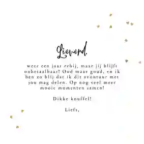 - Verwijs naar een grappig of mooi moment dat jullie hebben gedeeld. Bijvoorbeeld: “Ik hoop dat je vandaag net zoveel lacht als die keer dat je in het park van je fiets viel.”