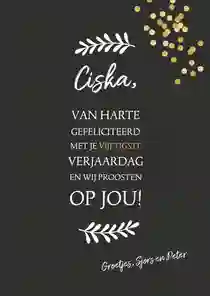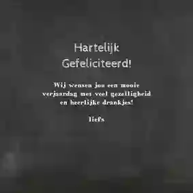 Bij Kaartje2go vind je de leukste verjaardagskaarten met wijn. Kies bijvoorbeeld voor een kaart met de grappige tekst Zie ik nou dubbel, wine not?, Sip, sip hooray of Leeftijd en glazen wijn moet je nooit tellen. Natuurlijk kun je ook zelf een ‘wijn’ verjaardagskaart maken in onze kaartmaker. Upload bijvoorbeeld een grappige foto van de jarige met een glas wijn in zijn of haar hand. Vrolijk de kaart vervolgens op met figuren en symbolen. Als je op ‘wijn’ zoekt in de kaartmaker, dan verschijnen al onze sprankelende wijn illustraties die je op de kaart kunt plaatsen. Schrijf tot slot nog een persoonlijke verjaardagswens aan de binnenkant.