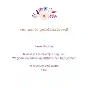 Wil je er dit jaar een extra groot feest van maken, dan kun je ook een cadeau toevoegen aan de kaart. Iets lekkers zoals chocolade doet het altijd goed. Maar je kunt er ook voor kiezen om een heerlijke fles wijn cadeau te doen. Hoe het werkt? Heel simpel: je kiest één van de cadeaus en voegt dit toe aan de bestelling van je kaartje. Vervolgens zorgen wij ervoor dat de kaart en het cadeautje bij jouw zus bezorgd worden. Zo zorg jij voor een dubbel feest in haar brievenbus!
