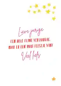 Jouw zus heeft een bijzondere plek in jouw leven. Het moment dat ze een jaartje ouder wordt is een moment om te vieren. Dat kan op verschillende manieren. Ben je van plan om bij haar langs te gaan en gezellig een gebakje te eten of heeft ze een feestje gepland, bijvoorbeeld? Of misschien pak je de telefoon om te feliciteren en gelijk even bij te praten. Hoe dan ook, er is niks leuker dan jouw zus (ook) te feliciteren met een kaartje. Het moment dat er een kaartje op de mat ploft is altijd een leuke verrassing. Van wie zal het zijn en wat staat erin? Jouw zus is ongetwijfeld blij verrast na het zien van de leuke kaart. En is de kaart gelezen, dan kan ze hem ophangen. Want zeg nou zelf: met kaartjes in het zicht voel je je écht jarig!