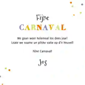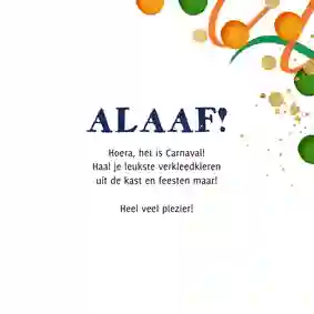 Is het bijna carnaval en zoek je een leuk kaartje om iemand uit te nodigen? Stuur een originele carnavalskaart via Kaartje2go, in een paar muisklikken ben je klaar. Leuk en heel persoonlijk.