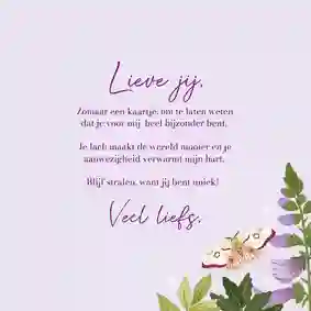 🦋 Maak de verrassing compleet door een lief cadeautje bij je vlinderkaart te versturen. Bijvoorbeeld een vers bosje bloemen of een zakje met bloemenzaadjes.