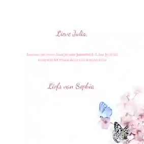 Past een van deze betekenissen bij de boodschap die je wilt versturen? Dan kun je je vlinderkaartje een extra persoonlijke touch geven. Ga bijvoorbeeld voor een ‘ik denk aan je’ kaart met vlinders of wens je dierbare veel liefs met een mooie vlinderkaart. En ben je in verwachting van een kindje, kijk dan eens bij onze geboortekaartjes met vlinders!
