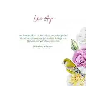 Onze designers gaan elke dag fluitend naar hun werk. Daarom waren ze er als de kippen bij om de leukste vogelkaarten te ontwerpen. Zoek je een mooie vogelkaart voor je dierbare? Dan heb je dus volop keuze. Ga bijvoorbeeld voor een schattige kaart met een roodborstje, ijsvogel, duif, mus of koolmeesje. En een kaart met uil is juist perfect voor een stoere look. Ben je zo trots als een pauw, dan is een kaart met een pauw extra leuk. En echte paradijsvogels kiezen natuurlijk voor een vrolijke toekan of flamingo kaart. Sla je vleugels dus uit en fladder door onze galerij. Voor welke vogelkaart ga jij?