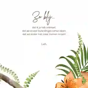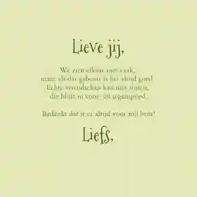 Onze designers gaan elke dag fluitend naar hun werk. Daarom waren ze er als de kippen bij om de leukste vogelkaarten te ontwerpen. Zoek je een mooie vogelkaart voor je dierbare? Dan heb je dus volop keuze. Ga bijvoorbeeld voor een schattige kaart met een roodborstje, ijsvogel, duif, mus of koolmeesje. En een kaart met uil is juist perfect voor een stoere look. Ben je zo trots als een pauw, dan is een kaart met een pauw extra leuk. En echte paradijsvogels kiezen natuurlijk voor een vrolijke toekan of flamingo kaart. Sla je vleugels dus uit en fladder door onze galerij. Voor welke vogelkaart ga jij?