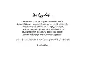 Zoek je naar een kaart voor een echte vogelliefhebber? Met een van onze vogelkaarten zorg je voor een vrolijke verrassing op de deurmat. Kies de leukste vogelkaart uit onze collectie en geef ‘m een persoonlijke touch.